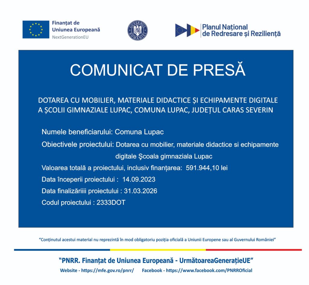 Categorii Anunțuri Informații publice Comunicat De Presa Autor articol De Alin Moteca Dată articol 27 martie 2026 ← Anunt Promovare